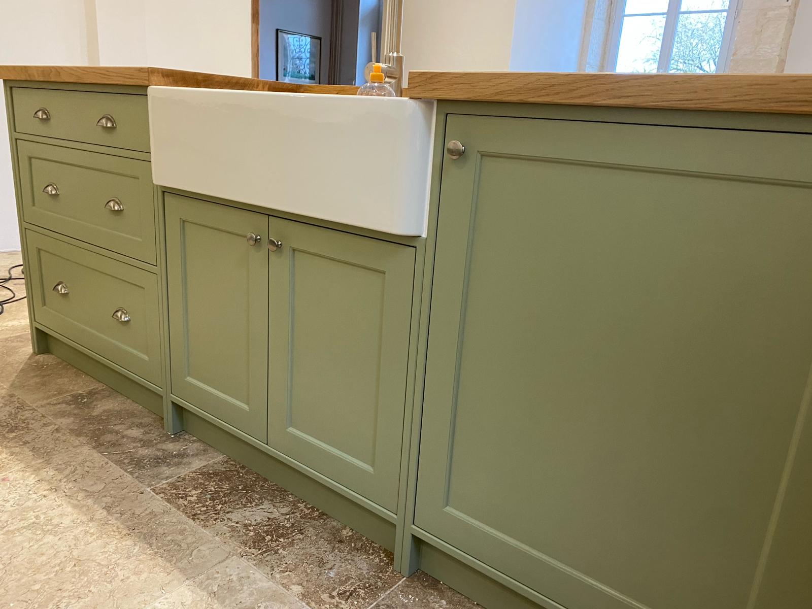 A more design-led variation is positioning the knob inline with the top rail of the Shaker panel, rather than purely from the cabinet edge.